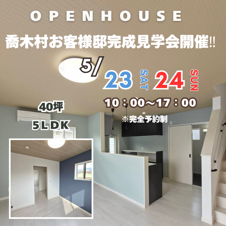 | 備 考 | 40坪 5LDK 2階建て 期間限定! 実際に家モンで建築されたお客様のお家を期間限定でお借りして 完成見学会を開催致します! この機会に是非見学会にお越しいただき実際に御覧下さい(*^▽^*) |