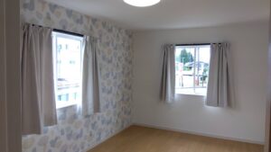 各部屋にアクセントクロスが施工してありかわいらしくオシャレな空間になっています♪