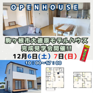 12月は6日(土)、7日(日)は駒ヶ根市大徳原モデルハウス