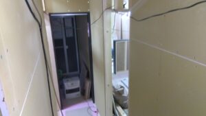 外壁工事と室内のボード張りを行っております!