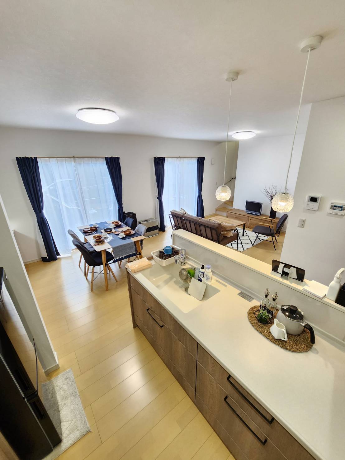 LDKは19.6帖で広々としていて、リビングには南向きに大きな掃き出し窓がある為