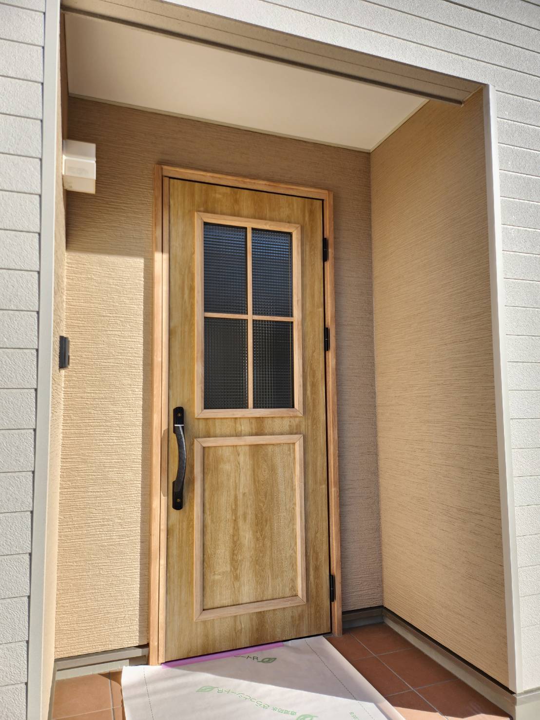 可愛らしい印象の外壁にビンテージな印象の玄関ドアが素敵です✨